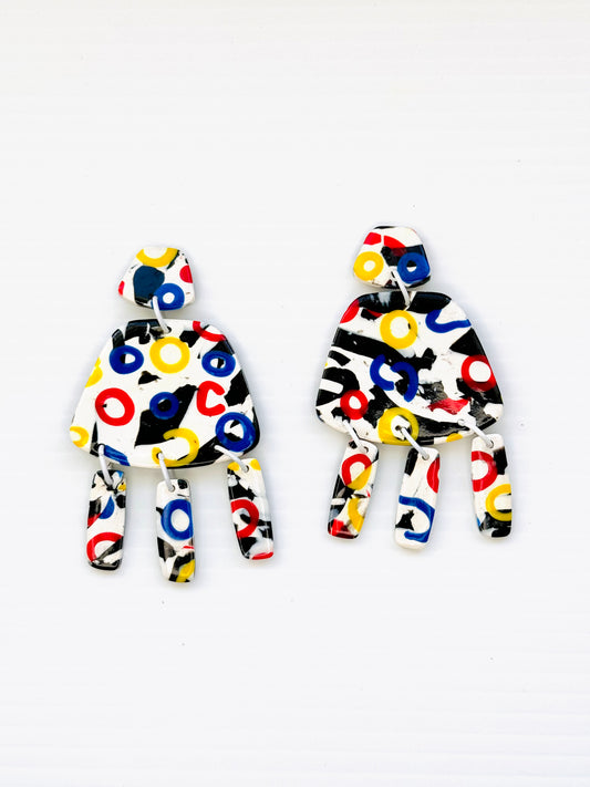 Maximalist Blue and Yellow Polka Dot Circle Earrings