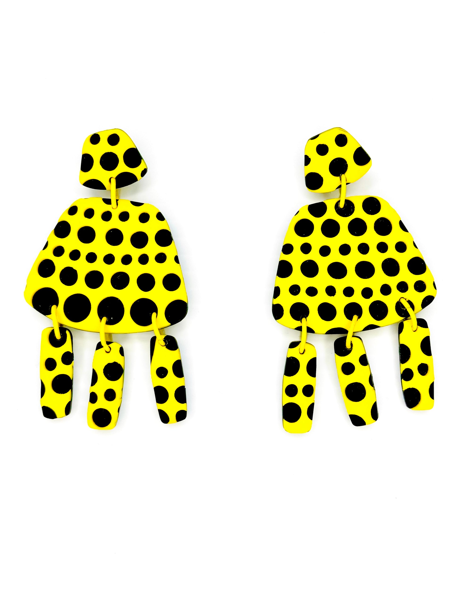 Bright and bold maximalist pumpkin pattern Yayoi Kusama inspired earrings in Yellow and black. Approximately 9cms length.