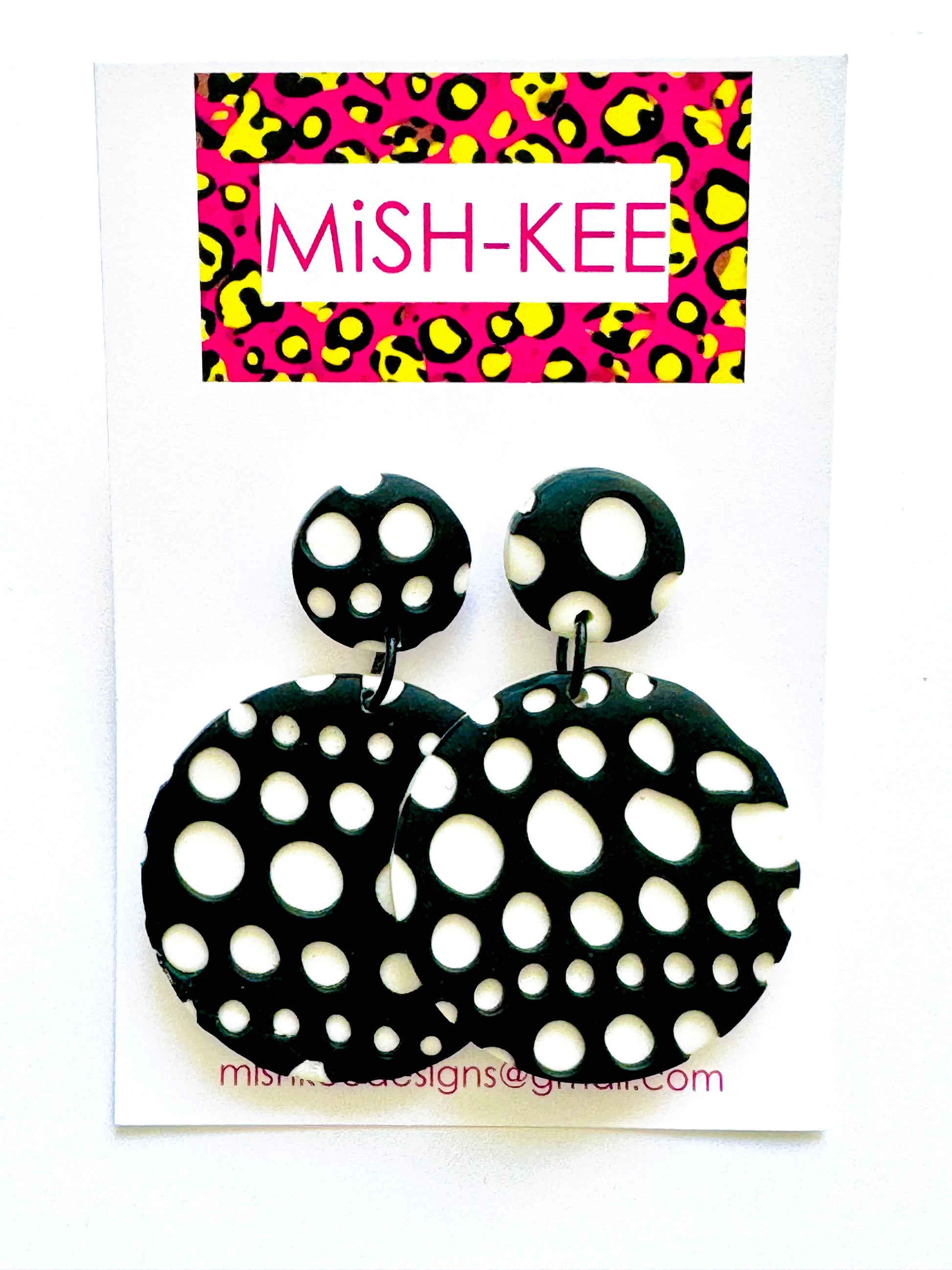 Maximalist Yayoi Infinity inspired Earrings - Black with White Polka Dots