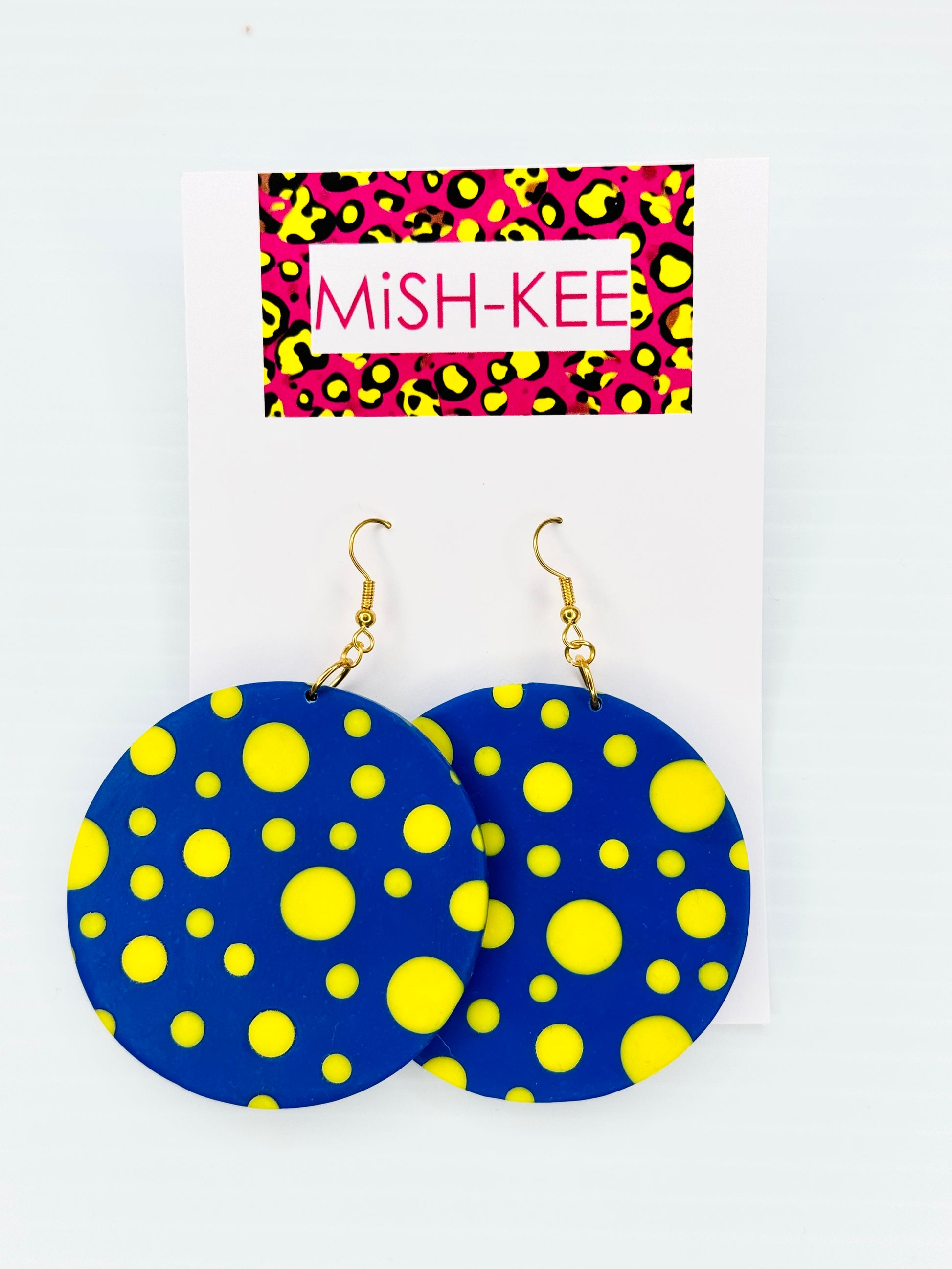 Maximalist Blue and Yellow Polka Dot Circle Earrings