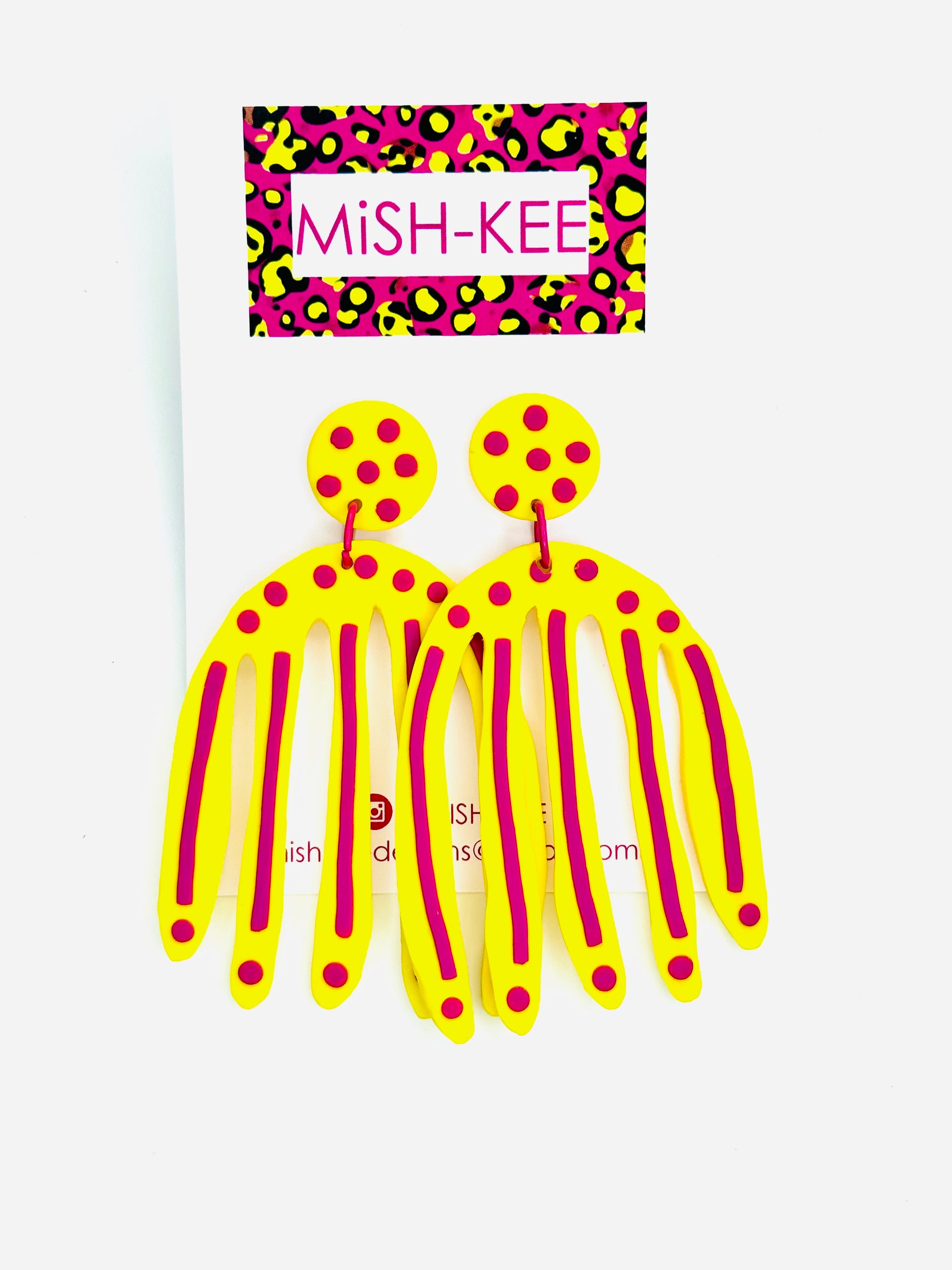 Maximalist Matisse inspired earrings - Yellow with Magenta Dots