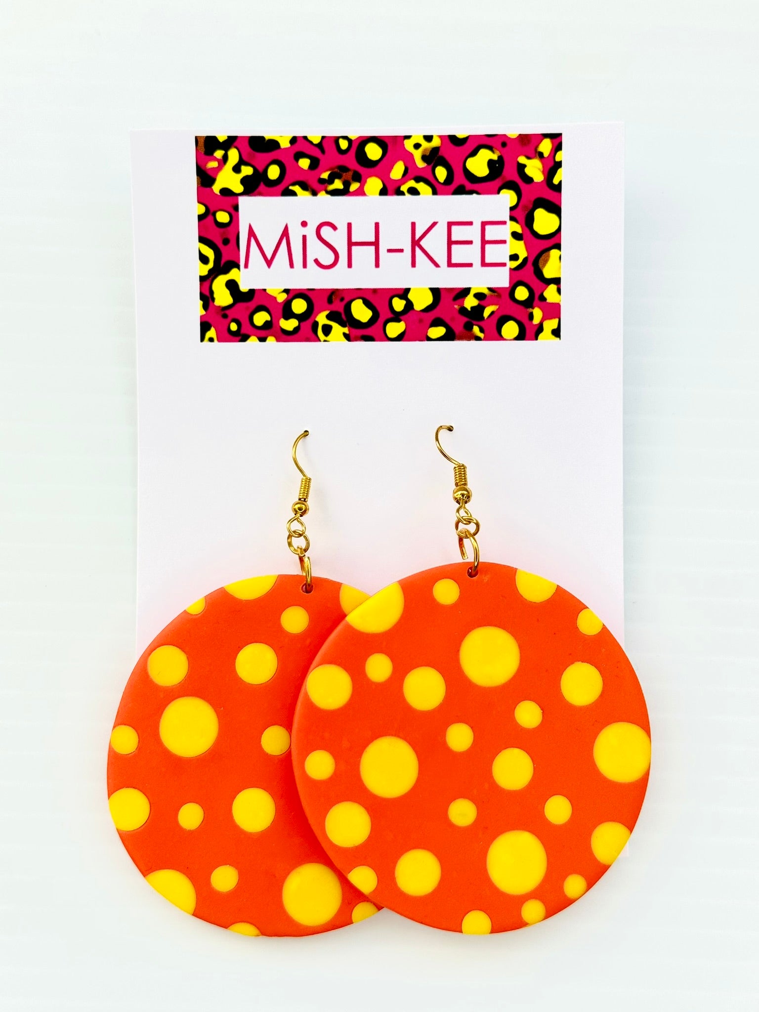 Maximalist Yayoi Infinity Inspired earrings - Orange and Yellow Dots