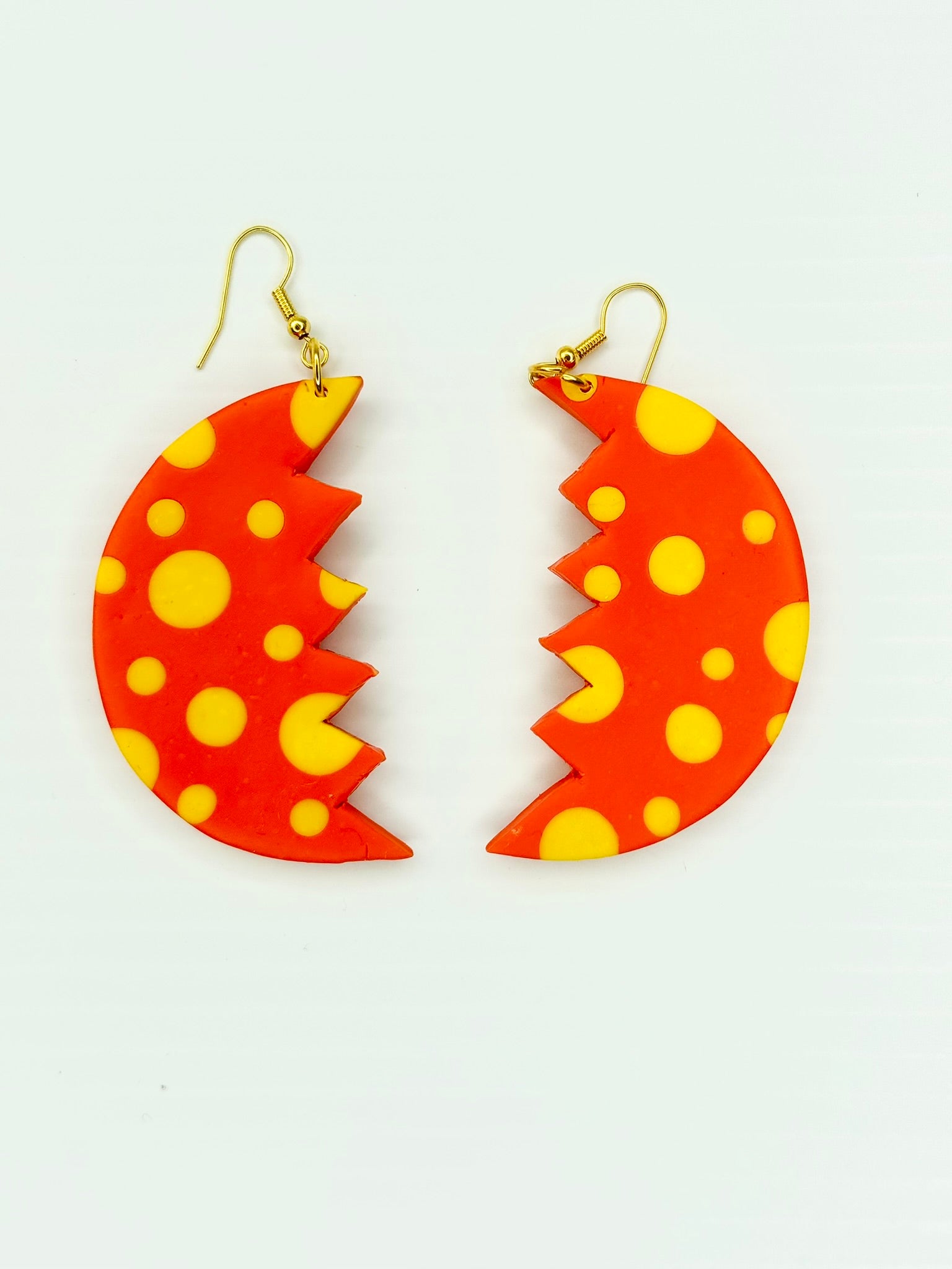 Maximalist Yayoi Infinity Inspired Zig Zag earrings - Orange and Yellow Dots