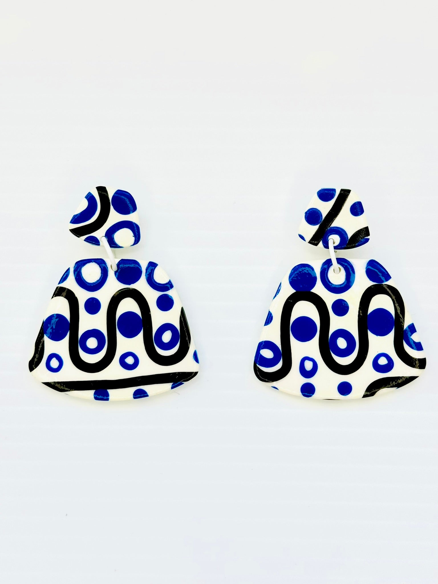 Cute retro pattern in blue and black on white. Approximately 6cms length